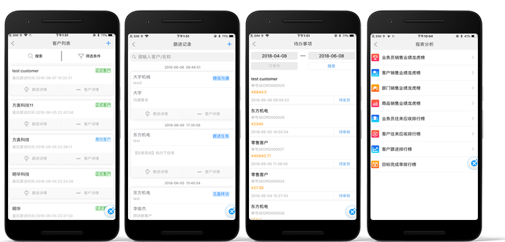 4、通過手機,可以從商品、客戶、職員、部門多角度去分析公司的銷售情況,并可以查詢相應(yīng)的銷售明細數(shù)據(jù)。